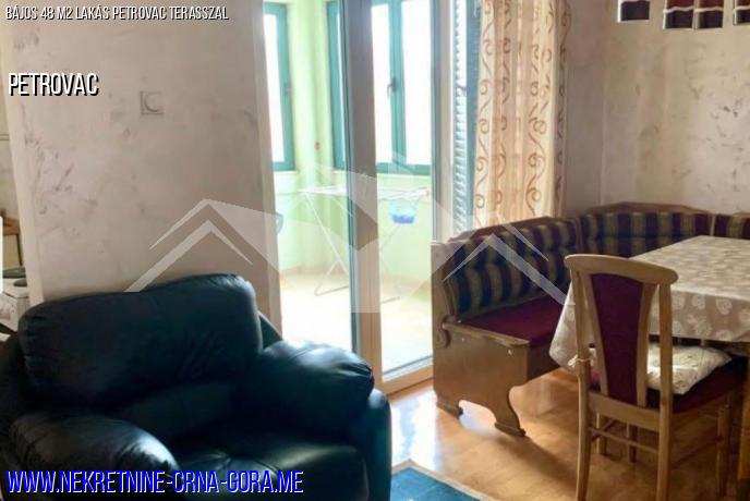 Konyha, nappali, egy hálószoba, fürdőszoba és üvegezett terasz