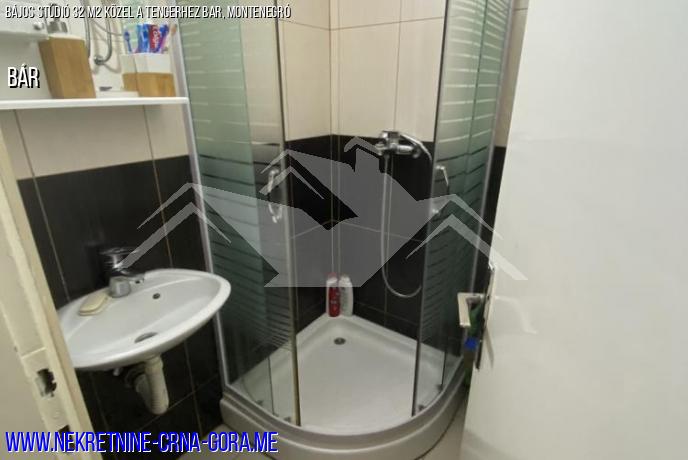 A stúdió teljes területe 32m2, a nappali területe 27m2
