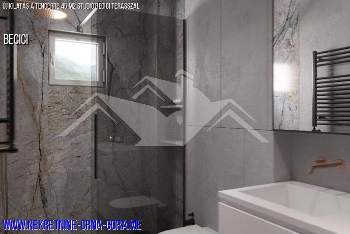 Egy stúdió apartman egy új épületben, kész tervezési projekttel, Becici csendes lakónegyedében található. Az apartman 600 méterre található a tengertől.