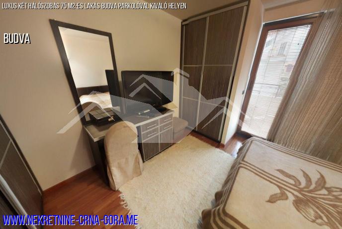 Budva városában, a TQ Plaza kerületben eladó egy 75 m2-es lakás, két hálószobával, valamint egy nappalival.