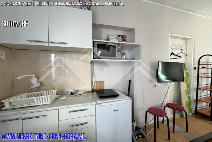 A Sutomore-I kétszintes ház második emeletét 2 apartmanból álló udvarral kínálják eladásra.