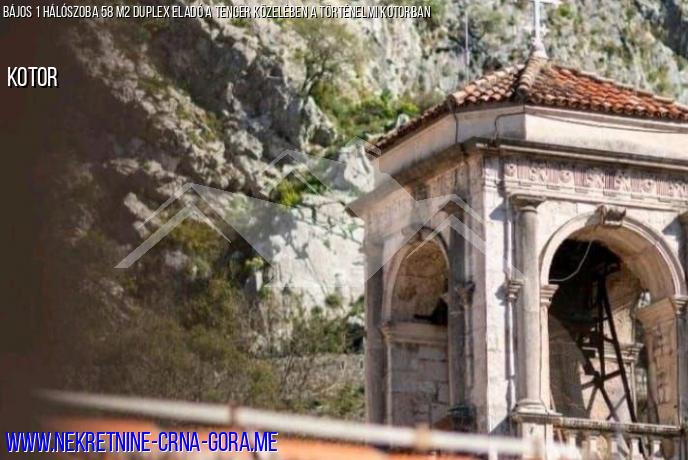 Kotorban, az óváros területén, az Sv Tripuna templom közelében, egy 1 hálószobás duplex lakás eladó