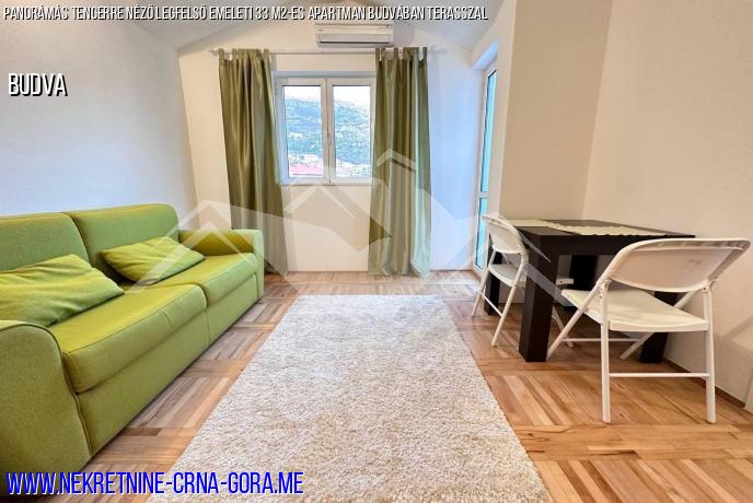 Az apartman egy hálószobából, egy külön konyhával rendelkező nappaliból, egy káddal ellátott fürdőszobából és egy teraszból áll, ahonnan panorámás kilátás nyílik Budvára és a tengerre.