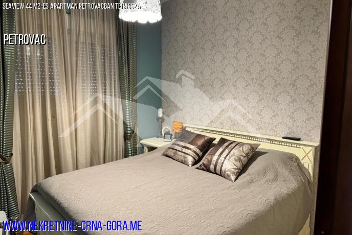 A lakás szerkezete: nappali konyhával, egy hálószobával, fürdőszobával és terasszal, kilátással a tengerre és a hegyekre