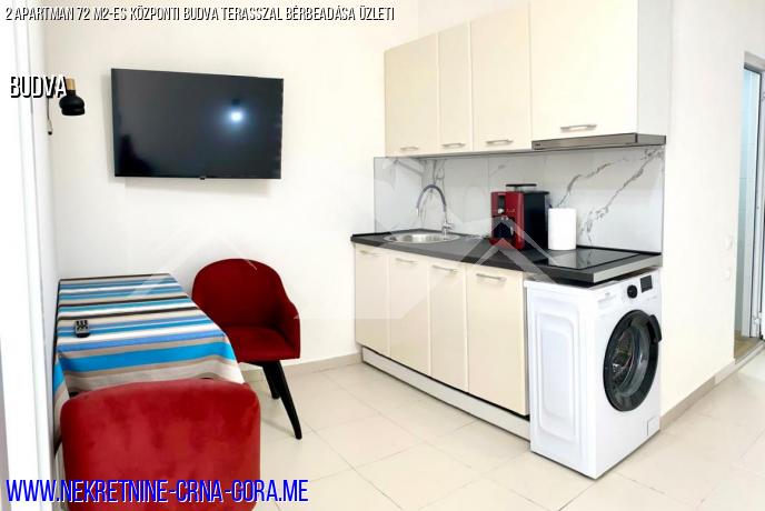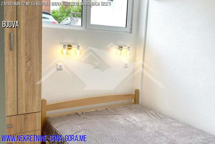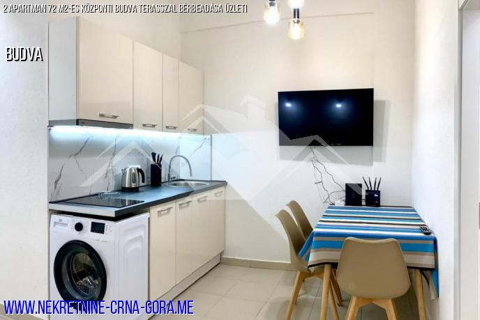 Két szomszédos apartman eladó Budva központjában (kerti kávézó), külön bejárattal, éppen befejezett nagyobb javításokkal (új csövek, vezetékek, padlófűtés a fürdőszobában stb.).