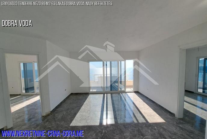 Eladó egy apartman Dobra Voda-ban, panorámás kilátással a tengerre.