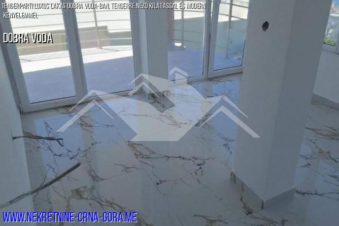 Eladó egy apartman Dobra Voda-ban, panorámás kilátással a tengerre.