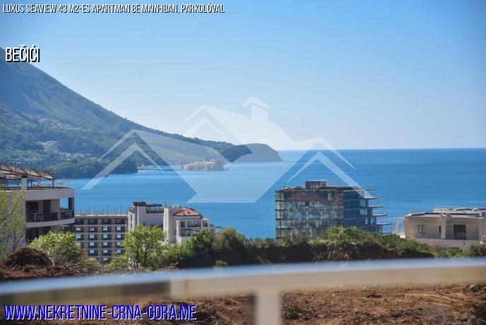 Lakás felépítése: nappali, konyha + étkező, egy hálószoba, fürdőszoba és terasz tengerre és hegyre néző kilátással.