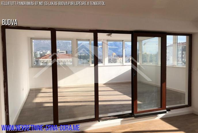 A lakás felújított, nagyon világos és tágas. Panorámás kilátás két oldalról (Budva városára és a tengerre). Minden szoba légkondicionált.