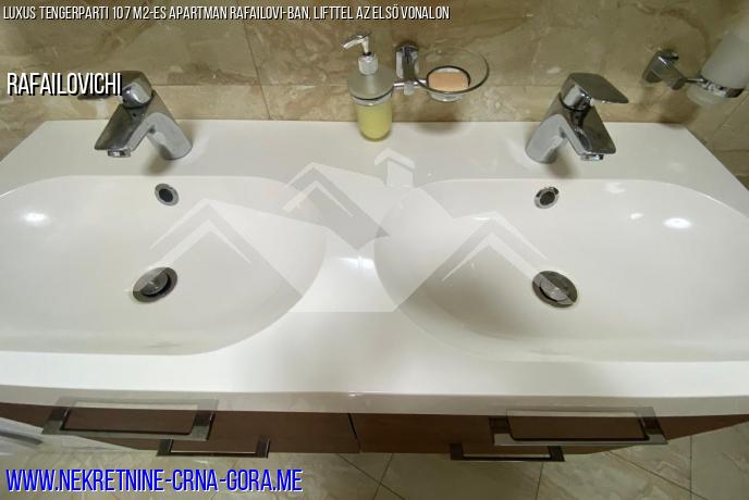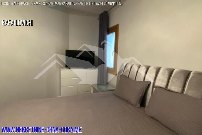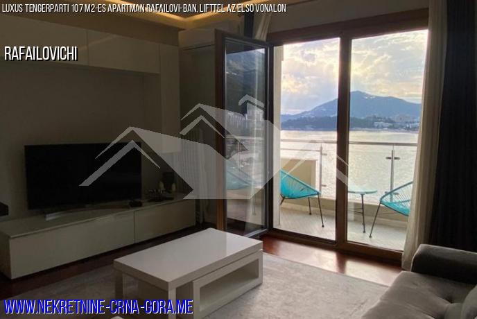 Lakás eladó Rafailovici területe 107 m2 a második sorban a tengertől. Lifttel le lehet menni a tengerbe.