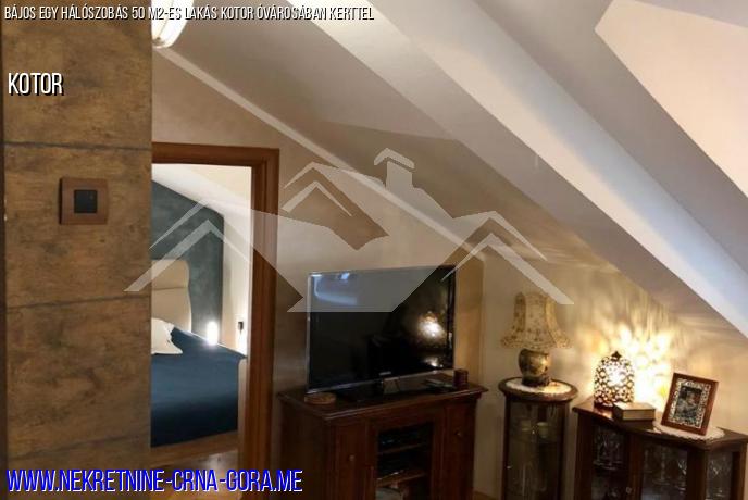 Apartman mérete: 50 m2. Tágas egy hálószobás apartman egy autentikus épület harmadik emeletén, Kotor óvárosának központjában. Ideális bérlésre, mivel az egész évben magas a turisztikai áramlás. Az átlagos bérleti díj 150-200 euró naponta.