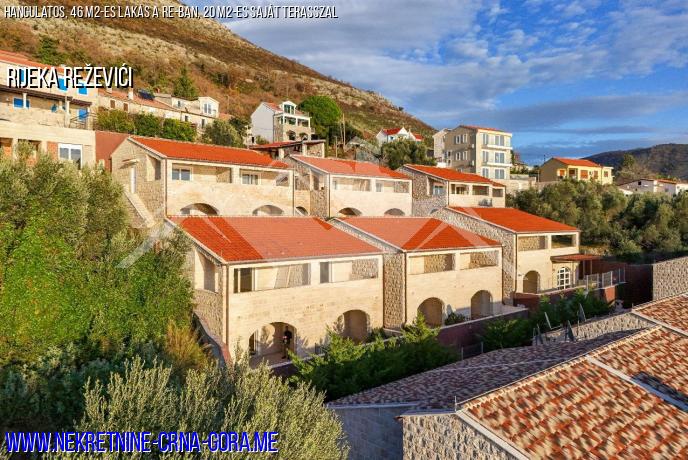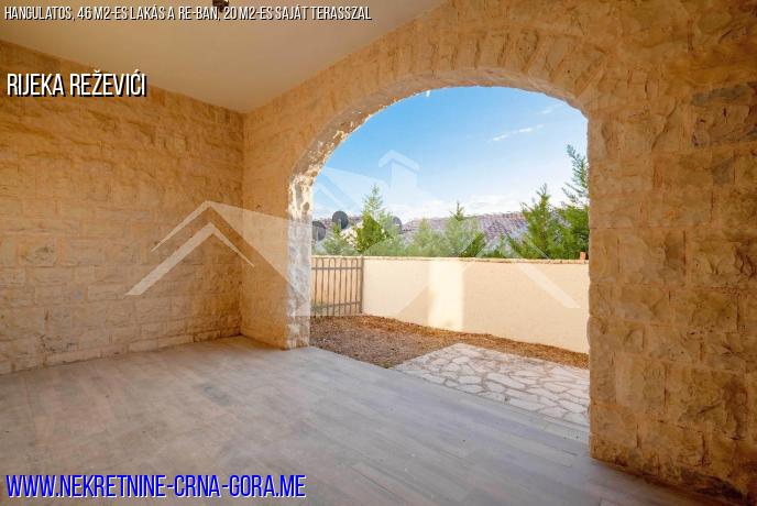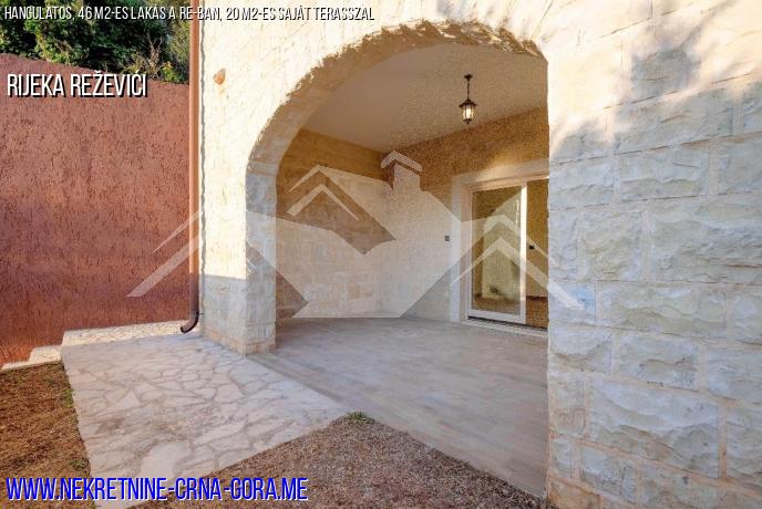 A lakás teljes területe 46 négyzetméter, 20 négyzetméteres szabadtéri terasz is található.