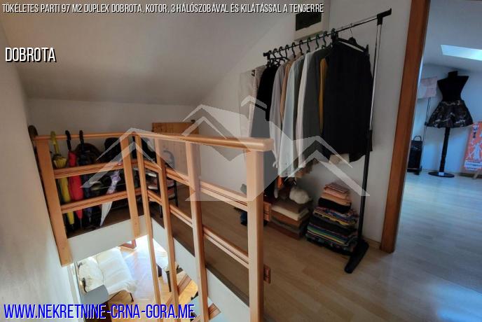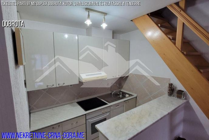 Tökéletes parti 97 m2 Duplex Dobrota, Kotor, 3 hálószobával és kilátással a tengerre