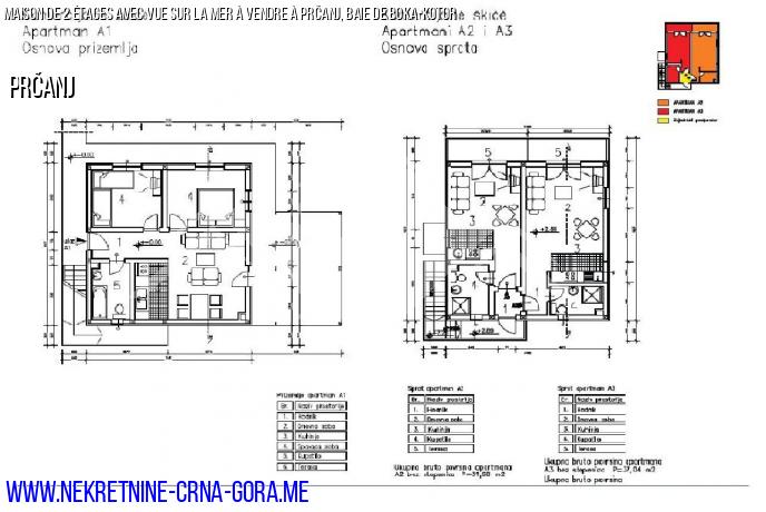 A vendre maison de deux étages près de la mer à prčan Boko-Kotor Bay au Monténégro, composé de 3 appartements séparés.