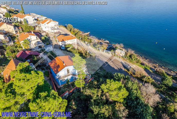 Dans le village de vacances de Krašići, une Villa familiale de 407 m2 à 30 mètres de la mer sur un terrain de 500m2 est à vendre.
