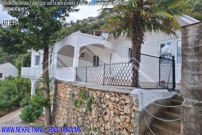Structure de la maison: cuisine, deux chambres, salle de bains et une grande terrasse avec vue sur la mer et les montagnes. La maison est vendue meublée.