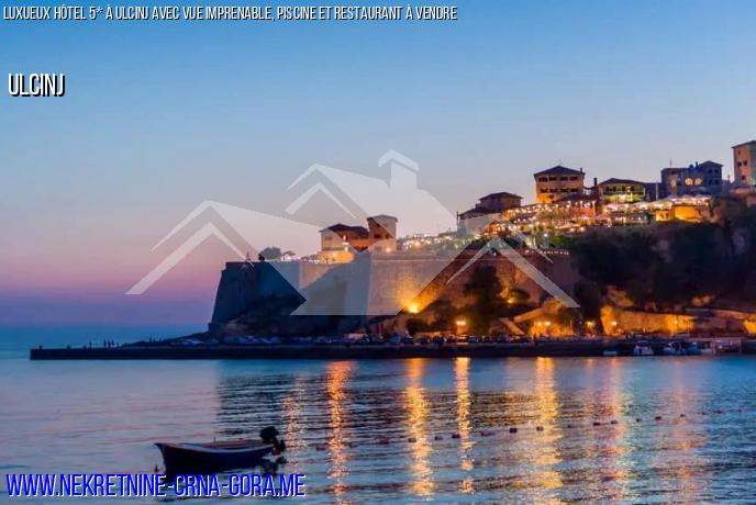 Hôtel de charme 5 étoiles exclusif à Ulcinj avec une vue imprenable sur la vieille ville d'Ulcinj, Monténégro à vendre. Six étages au total et une immense terrasse ensoleillée.