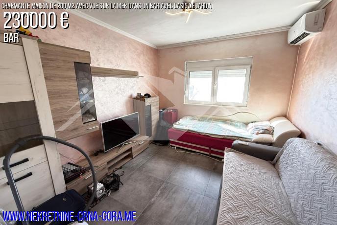 Dans la ville de Bar, une maison confortable de 200 m2 est à vendre, située sur un terrain de 496 m2. La côte est à seulement 2,6 km. La propriété est décorée conformément à la loi, légale.