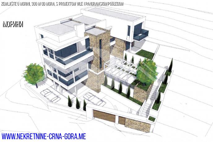 Površina parcele je 570 m2. Parcela se nalazi odmah iznad elitnog kompleksa M. A. (Cijena po četvornom metru od 5.000 eura).