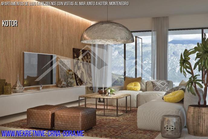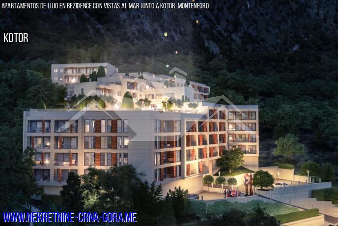 Apartamentos en un complejo residencial a orillas del Golfo de Kotor del mar Adriático en Montenegro.