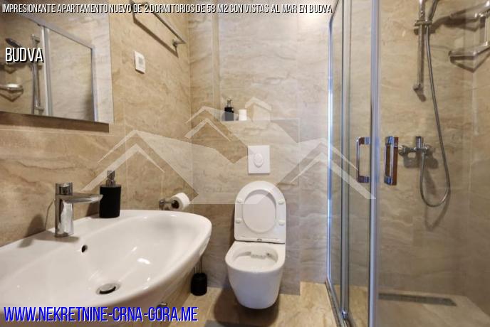 Muy bonito, nuevo y moderno Apartamento de un dormitorio en Budva con vistas laterales al mar. El Apartamento tiene una superficie de 58 metros cuadrados y se puede llegar al mar en unos 15 minutos. Nuevo edificio moderno con Ascensor. Todos los muebles y electrodomésticos son nuevos. Muy buena zona de la ciudad. Edificio nuevo, por lo que siempre se puede alquilar o vender este Apartamento a un precio muy bueno.
