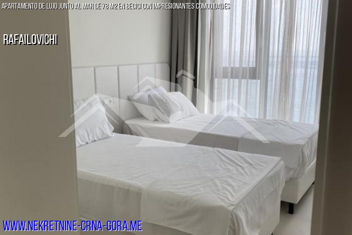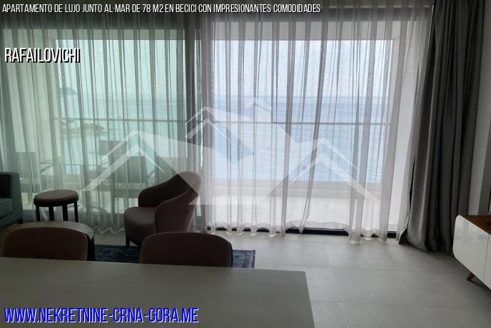 Un hermoso apartamento nuevo en la hermosa bahía de Rafailovici, ubicado en el décimo piso del edificio.