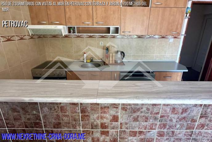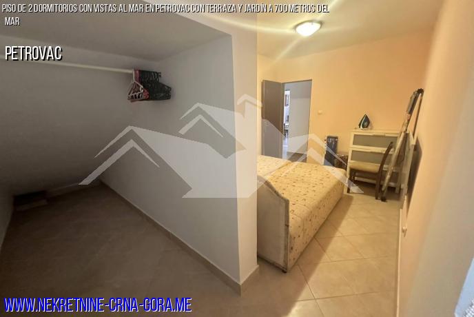 Se vende amplio Apartamento en Petrovac de 65m2, Terraza de 9m2, 2 Dormitorios, con vistas a un hermoso Jardín verde y al mar.