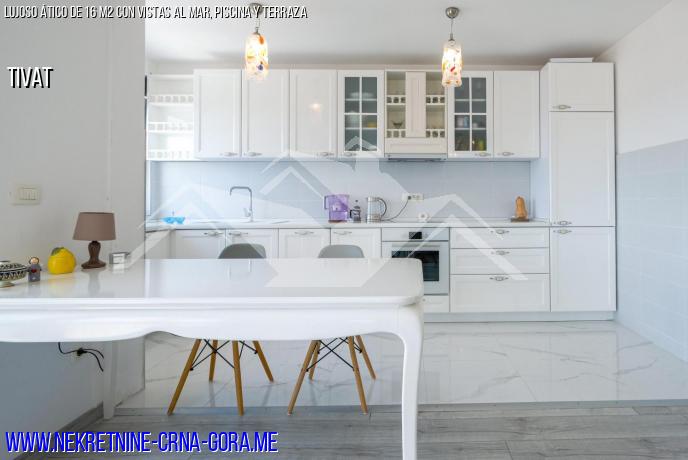 Presentamos a su atención un amplio ático con 3 Dormitorios y una chimenea, ubicado en el corazón de Tivat. Esta propiedad única se encuentra en un nuevo complejo equipado con 2 piscinas, a pocos pasos de toda la infraestructura necesaria.