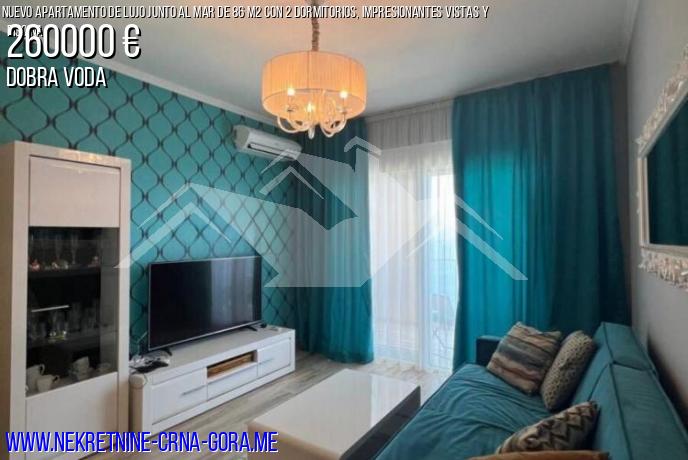 Se ofrece a la venta un elegante y amplio Apartamento de dos Dormitorios en un conjunto residencial moderno, bien ubicado a solo quince metros de la costa del mar, en la hermosa ciudad de Dobra Voda.