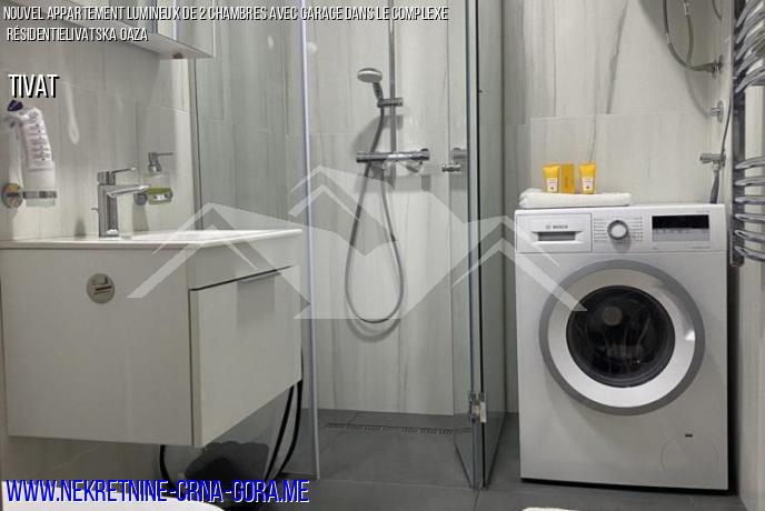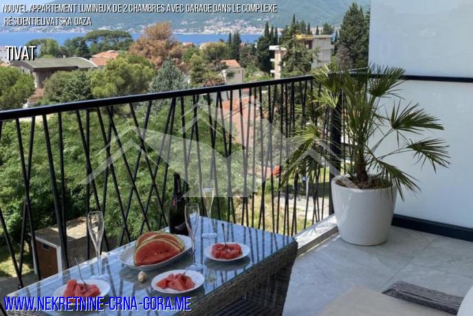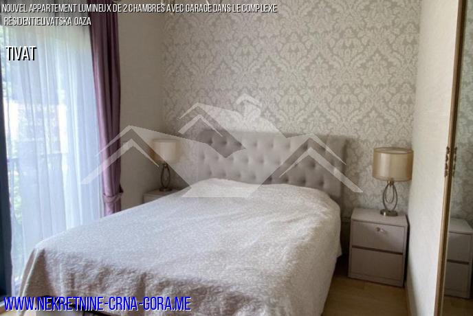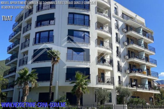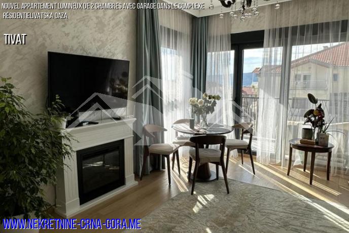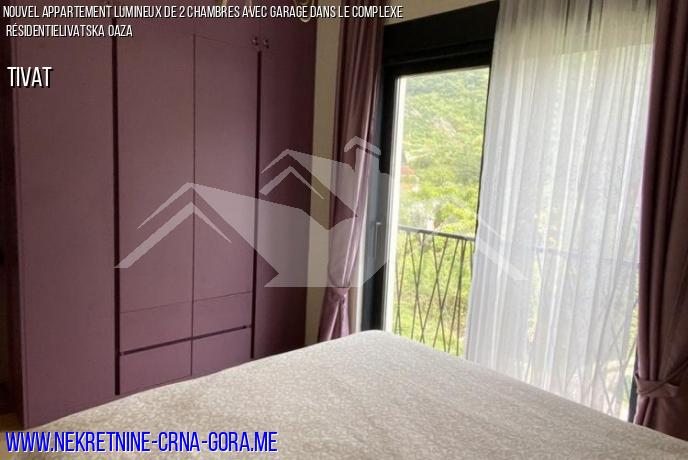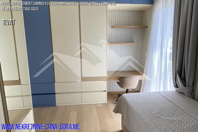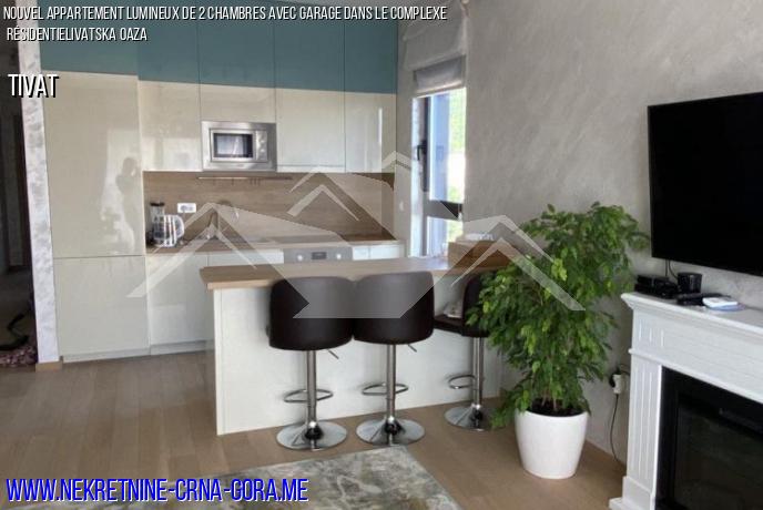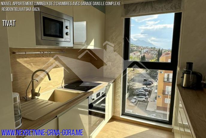 Beau, lumineux, appartement neuf avec 2 chambres et garage dans le complexe résidentiel Tivatska Oaza (année de construction 2020).