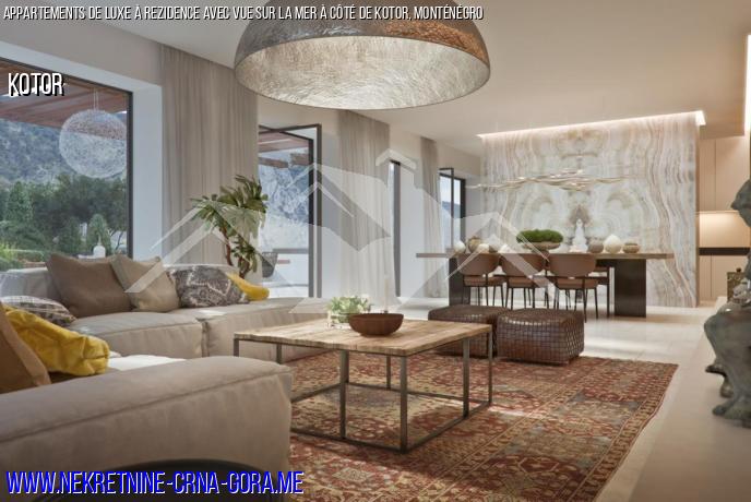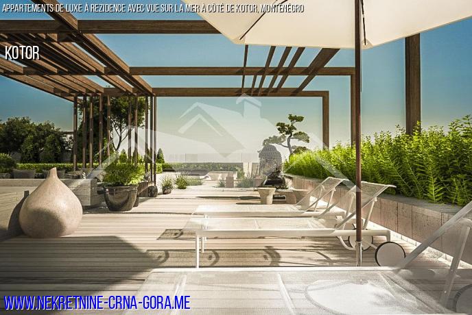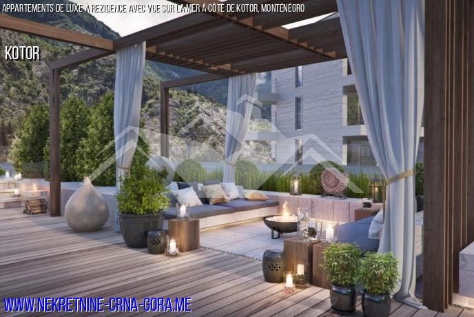 Appartements dans un complexe résidentiel sur les rives de la baie de Kotor de la mer Adriatique au Monténégro.