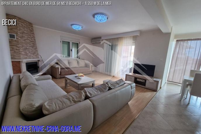 À Bečići sur la Riviera de Budva, dans un immeuble moderne, un appartement de 94 m2 avec 2 chambres, 2 salles de bains et terrasses est vendu.