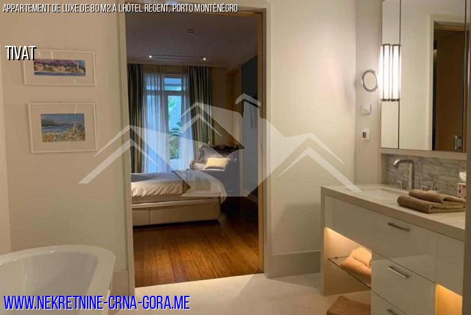 A vendre appartement de 80 m2, une chambre et une terrasse qui donne sur la grande piscine et la Marina. L'appartement est au rez-de-chaussée de l'hôtel Regent, situé au cœur de la célèbre Marina de Porto Montenegro.