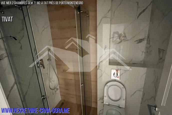 Appartement à vendre avec 2 chambres, 1 salle de bain 71,6 m2, 2 étage, à Tivat, District de Podkuk. Toutes offrent une vue sur la mer. Terrasse de 4,9 m2.