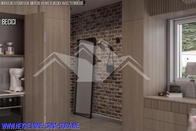 Studio dans un nouveau bâtiment, avec un projet de conception prêt à l'emploi, situé dans un quartier calme de Bečići. L'appartement est situé à 600 mètres de la mer.