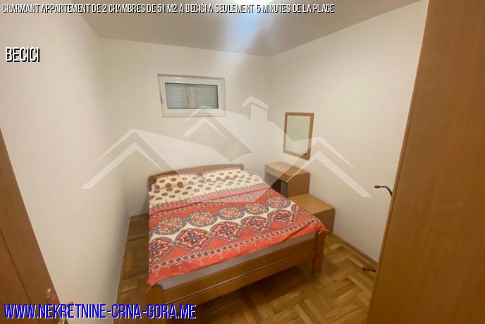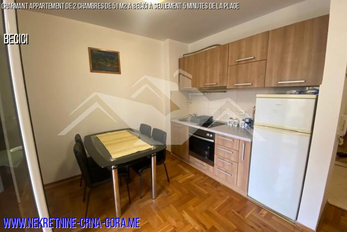 Sur la Riviera de Budva à Becici, un appartement de 51m2 avec deux chambres plus un salon est à vendre. Situé au deuxième étage d'un immeuble.