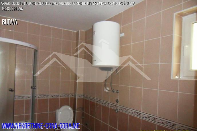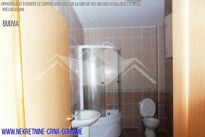 A vendre grand appartement lumineux avec 3 chambres et 2 balcons près de Budva dans le village de Seots. L'appartement est situé au cinquième étage d'un immeuble.