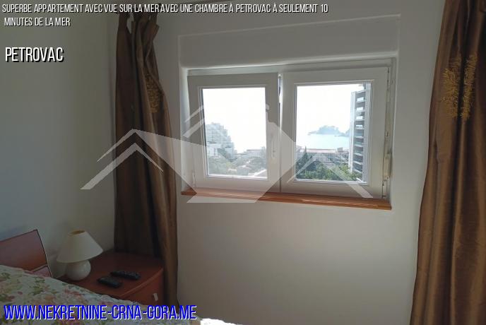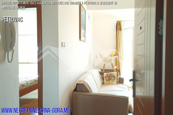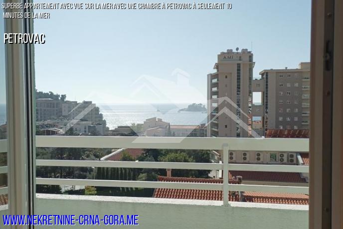 À Petrovac, un appartement de 37m2 avec une chambre et un salon avec vue sur la mer est à vendre. Situé au 4ème étage d'un immeuble.