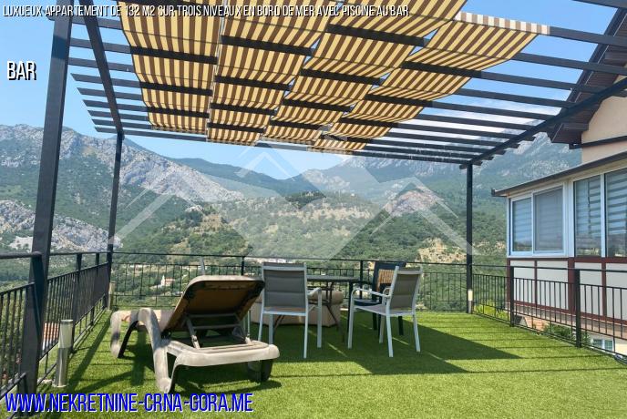 Au deuxième étage: deux terrasses vitrées + terrain attenant de 220m2 + salle de bain, salon, cuisine.