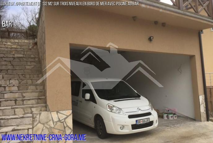 Le premier niveau est un garage de 20 m2 et un garage de 40 m2 /en tant que local d'hôtel ne faisant pas partie de l'espace de vie / les Deuxième et troisième niveaux sont l'appartement lui — même avec un escalier intérieur.