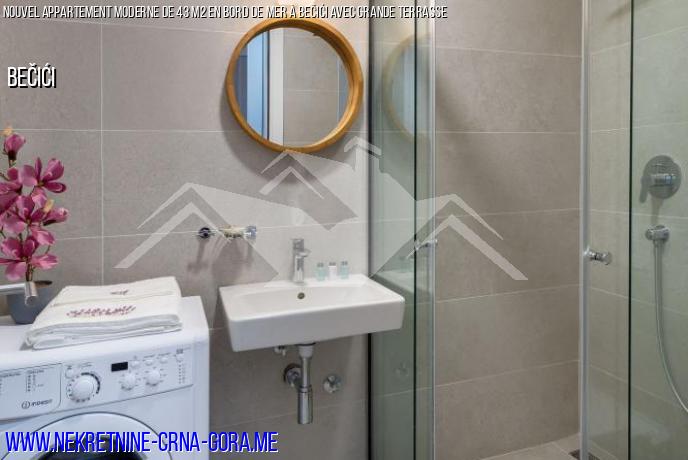 Appartement à vendre dans un nouveau bâtiment dans une maison moderne à Bečići avec une rénovation de conception et un patio privé.