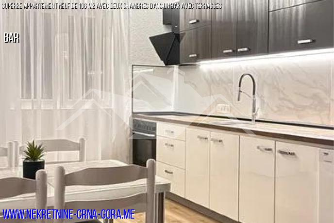À la vente est offert un nouvel appartement avec 2 chambres à coucher dans le Bar, quartier de Belishi.