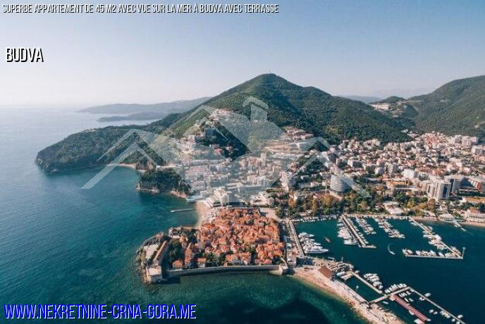 La superficie de l'appartement est de 45m2. La structure de l'appartement: salon combiné avec cuisine, une chambre, salle de bains et terrasse avec vue sur la mer et les montagnes.