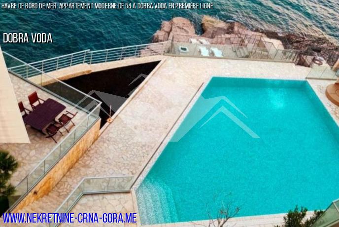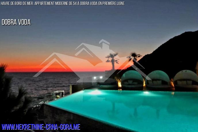 À la vente est offert un appartement de 54 m2 dans le complexe Dobra Voda sur la première ligne de la mer.