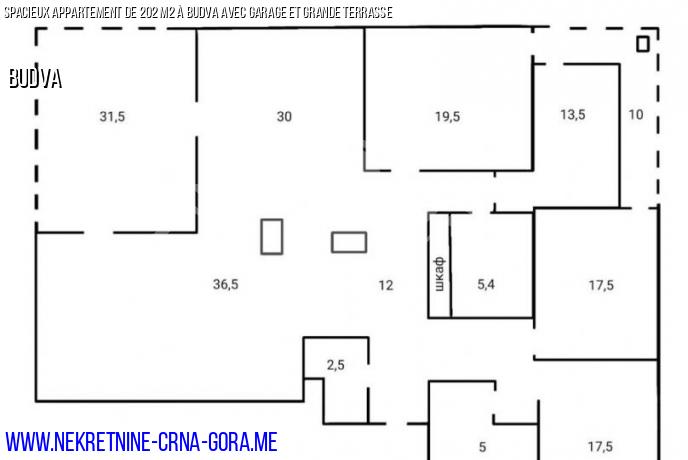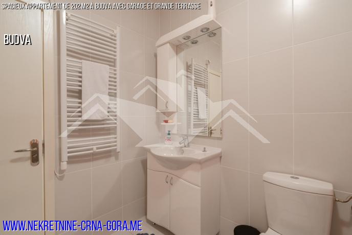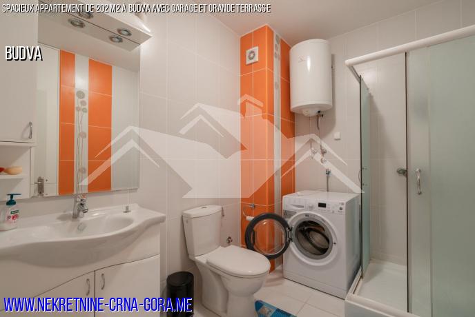 A vendre appartement entièrement meublé à Budva avec 3 chambres, 2 toilettes et une grande véranda.