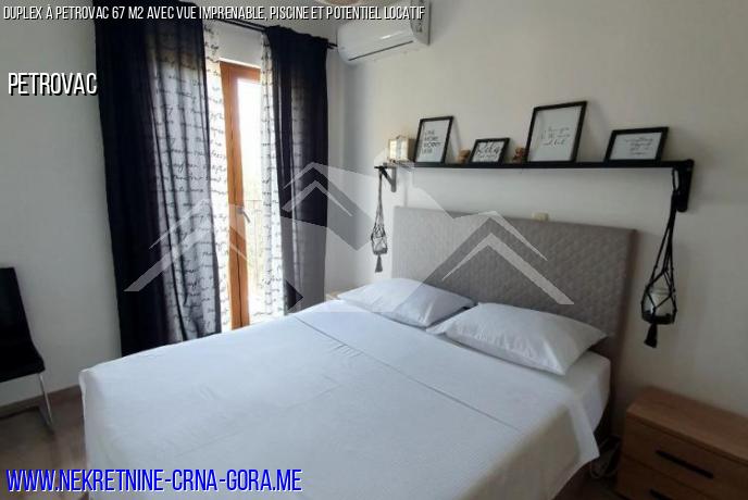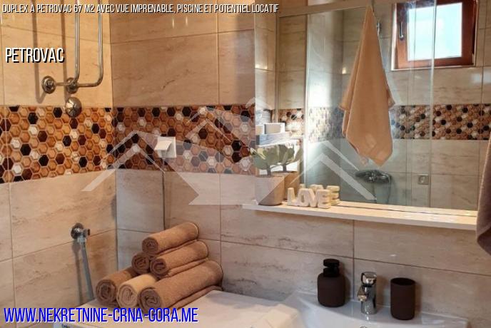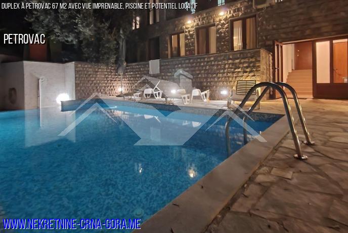 Petrovac, vente appartement dans un complexe avec piscine, 2 chambres, 2 salles de bains, sur 2 étages dans un appartement duplex, d'une superficie de 67m2. Deux balcons avec de belles vues sur la montagne et la mer, 2 terrasses.