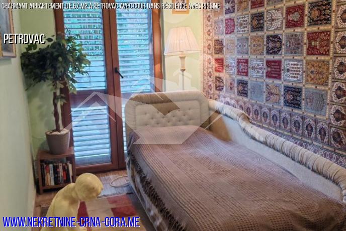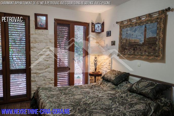 Appartement à vendre à Petrovac avec cour dans un complexe résidentiel avec piscine.