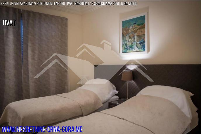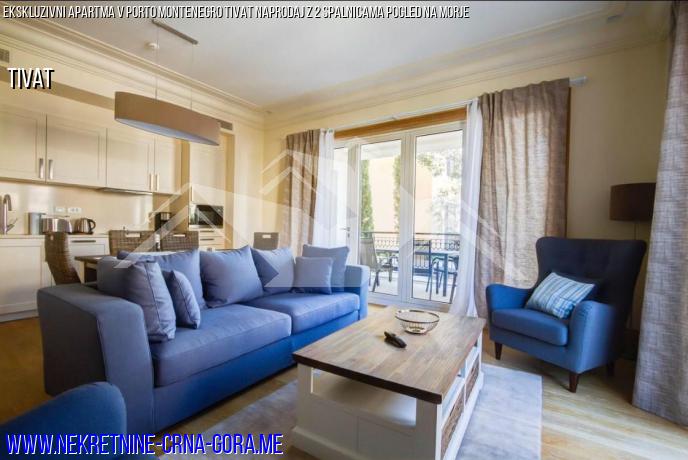 Ekskluzivno stanovanje za prodajo s površino 107 m2: 2 spalnici, prostorna dnevna soba v kombinaciji z jedilnico, Ločena kuhinja, ena kopalnica, ločeno stranišče in terasa s pogledom na morje, 1.nadstropje. Stavba Ksenija je zaradi svojega sloga in kakovosti gradnje ena najbolj zaželenih v Porto Montenegro.