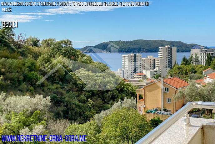 Za prodajo svetlo, moderno stanovanje s pogledom na morje v vasi Becici, Budva riviera.