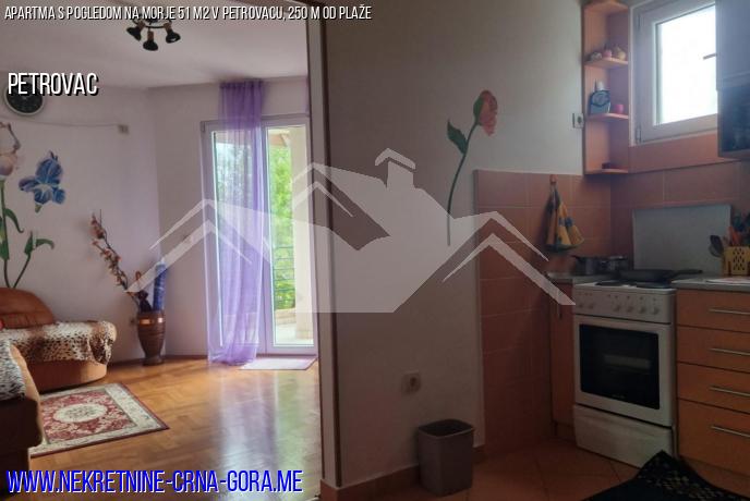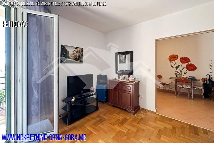 Apartma s pogledom na morje 51 m2 v Petrovacu, 250 m od plaže